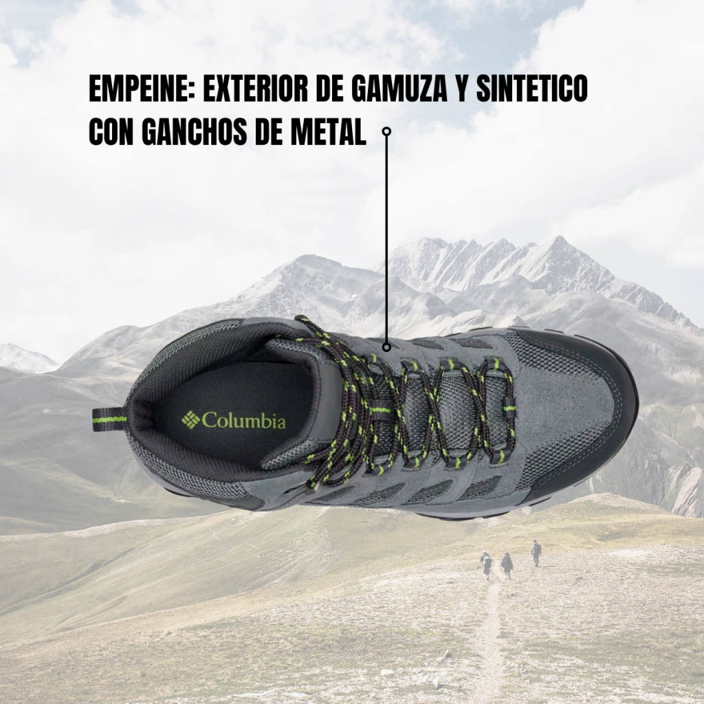 Las Columbia Crestwood Mid Waterproof para hombre son botas de senderismo de caña media, diseñadas para ofrecer comodidad, tracción y protección en terrenos irregulares. Su construcción combina cuero, malla y material sintético, lo que aporta durabilidad y buena ventilación. Gracias a la tecnología Omni-Tech, brindan impermeabilidad y transpirabilidad, manteniendo los pies secos en condiciones húmedas. La entresuela Techlite proporciona una amortiguación ligera y duradera, mientras que la suela Omni-Grip asegura un excelente agarre en diferentes superficies.