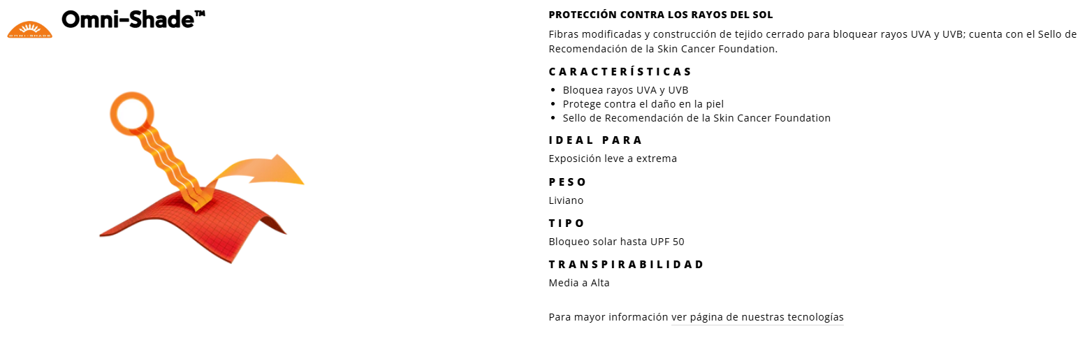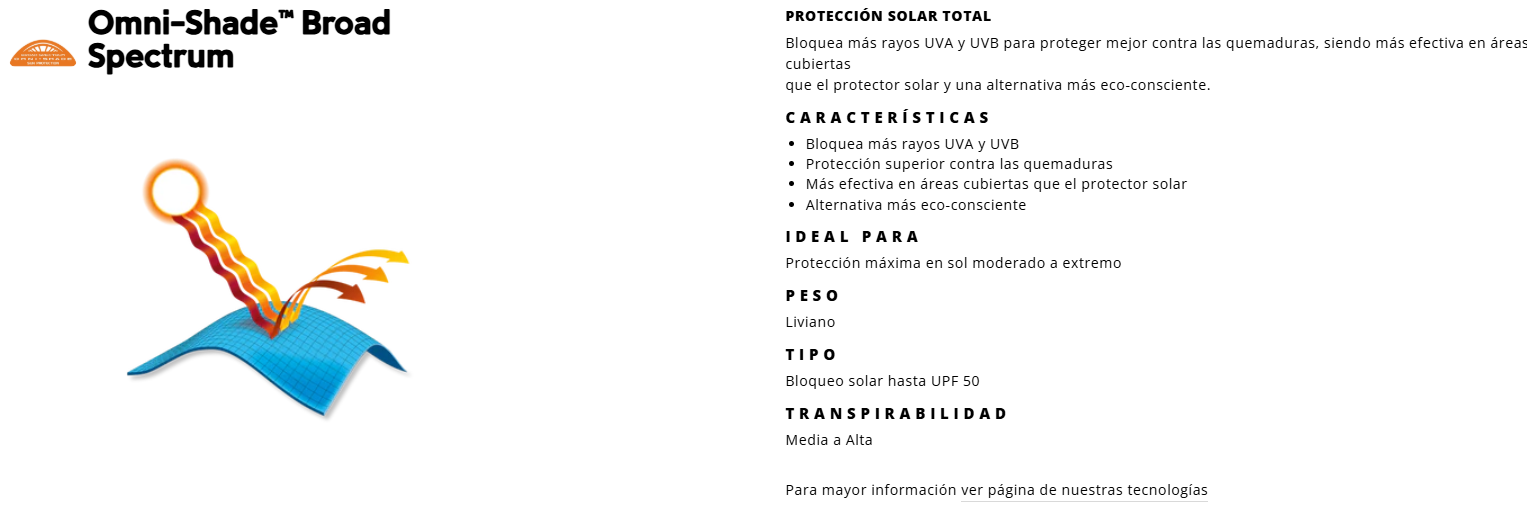 Equipado con tecnología Omni-Shade™ Broad Spectrum UPF 50, bloquea una amplia gama de rayos UVA/UVB para proteger tu piel del sol incluso en las caminatas más intensas.