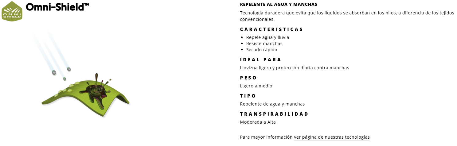 Gracias a Omni-Shield™, repele la humedad y evita que la suciedad se adhiera, manteniéndote seco, limpio y cómodo en cualquier terreno.