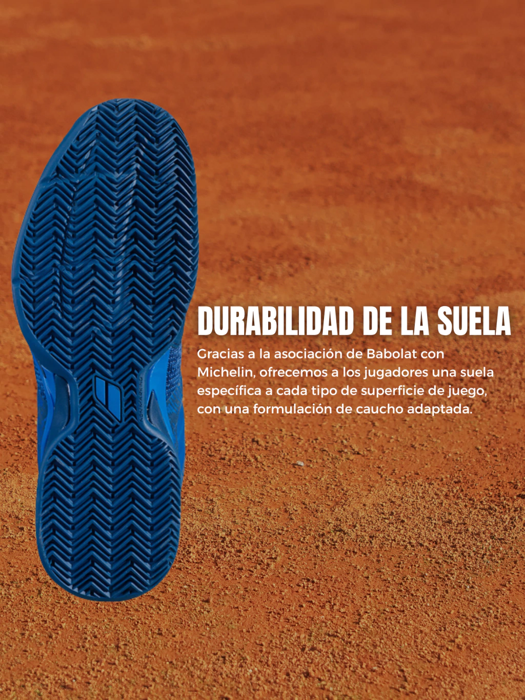 Gracias a la asociación de nuestra experiencia con la de Michelin, ofrecemos a los jugadores una suela específica a cada tipo de superficie de juego, con una formulación de caucho adaptada.