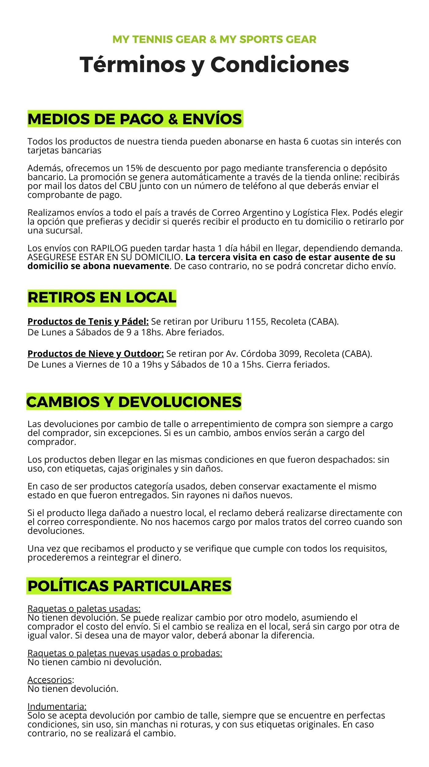 Retiro en My Tennis Gear - Pres. José Evaristo Uriburu 1155, CP 1114, CABA. Lunes a Sábados de 9:00 a 18:00